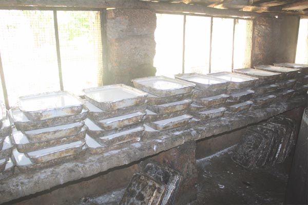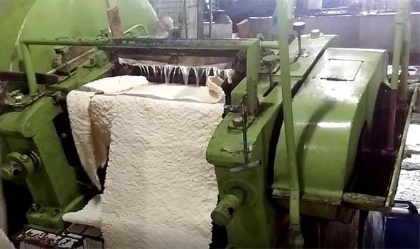 After 24 hours when the rubber are set their water will be extracted through manual process with the help of two machine. During the process the entire water content of the rubber is removed through certain pressure and rubber becomes available for drying, smoking and to make it ready for sales.