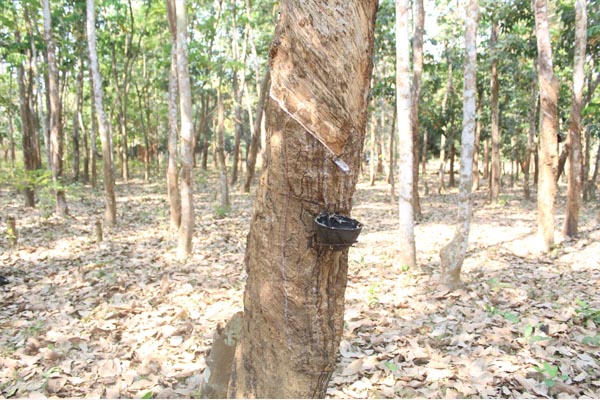 Tapping is generally done in the marking trees because the cambium of the tree remains active to produce the hire yield of rubber latex. The tapping operation completes before 12 o clocks, after word the yield become negligible. The tapped latex are collected through bucket and brought for processing through a skilled labor.